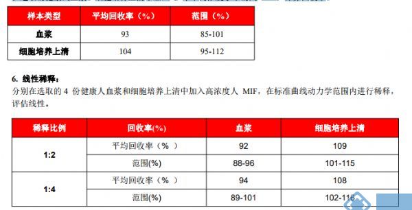 最低可检测人 MIF 浓度达 15pg/ml